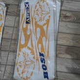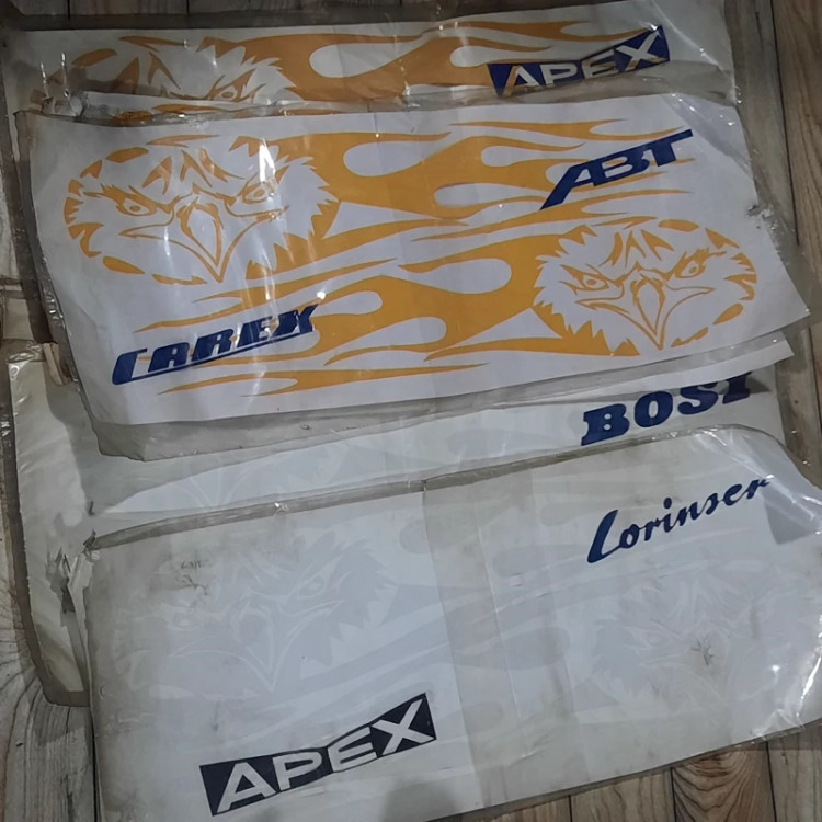 برچسب دو تایی یک ورقه سلفون دار عقاب برش خورده سایز باک موتور سیکلت هوندا وانواع موتور ها سایز طول 50 تا 55 سانت شامل دو رنگ زرد و سفید با حروف لاتین طبق تصویر ارائه شده ارسال طبق نمونه تصویر های ارائه شده